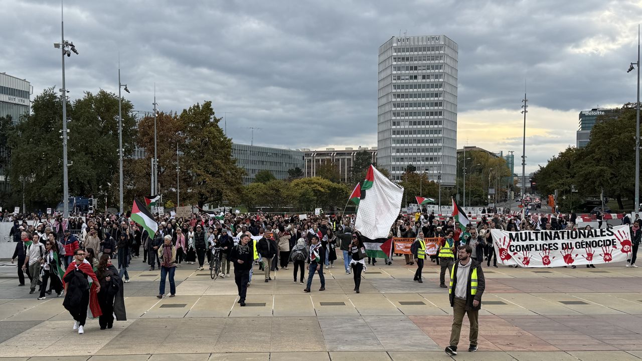Cenevre'deki İsviçre Posta Dairesi önünde toplanan binlerce kişi, şehir merkezinde yürüyüş yaptı.