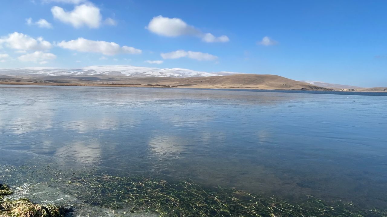 Kars-Ardahan sınırı arasında yer alan Çıldır Gölü'nün, Taşbaşı köyü mevkisindeki kenar kısımları dondu. Gölün donmayan bölümlerinde ise ördek ve sakarmeke kuşları yiyecek aradı.