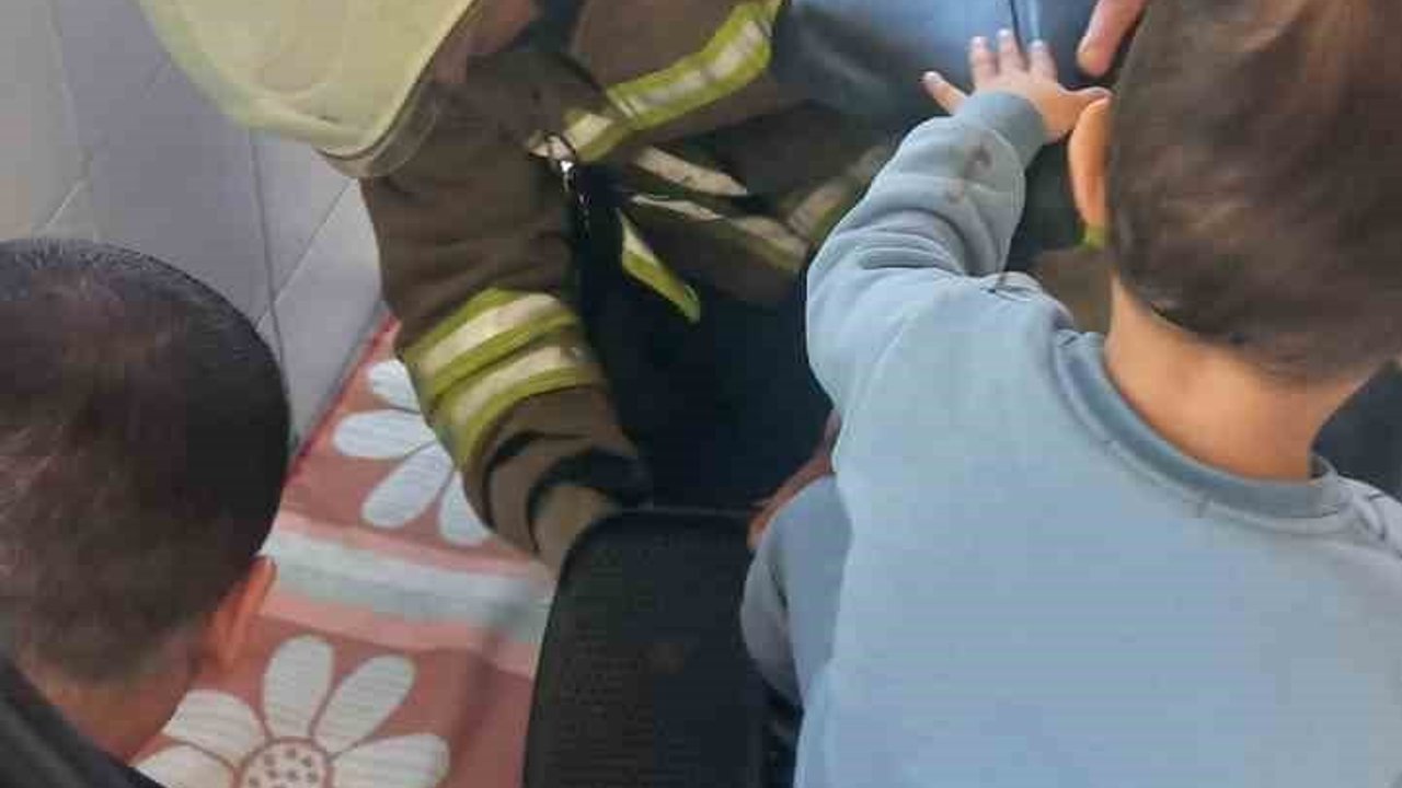 Hatay'ın Erzin ilçesinde spor aleti olan eliptik bisikletin pedalına ayağı sıkışan çocuğu itfaiye ekipleri kurtardı.