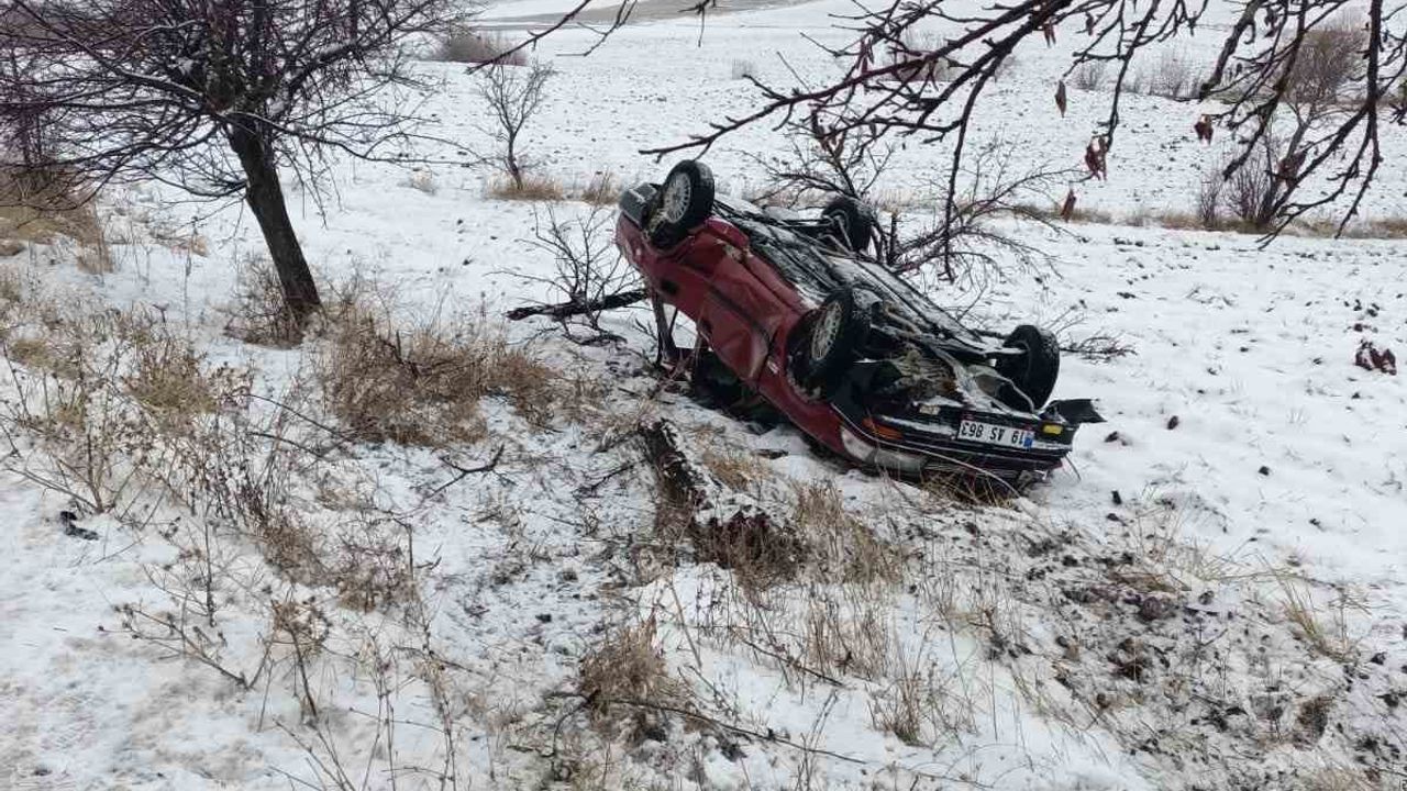 Çorum'un Alaca ilçesinde kar yağışı ve buzlanma nedeniyle kontrolden çıkan otomobilin ağaca çarpıp takla attığı kazada 2'si çocuk 4 kişi yaralandı.