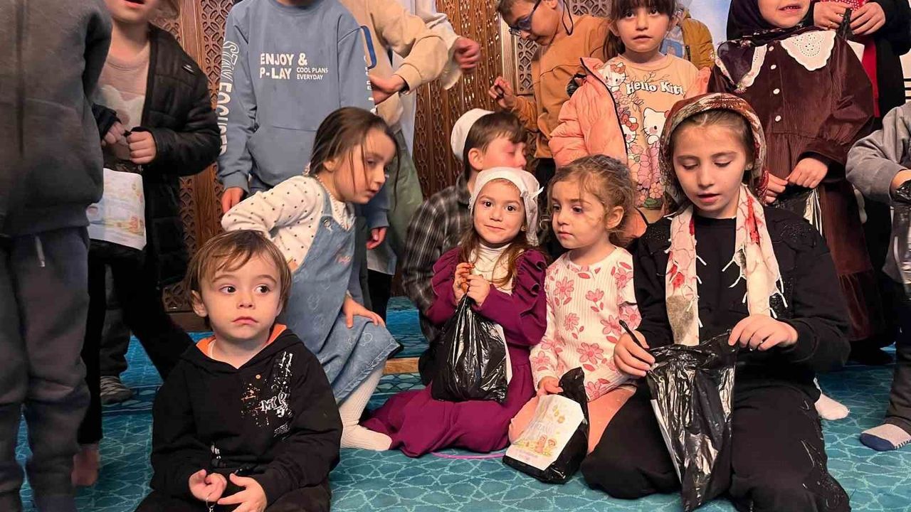 Teravih sonrası ayakkabılardan çıkan hediyeler çocukları sevindirdi