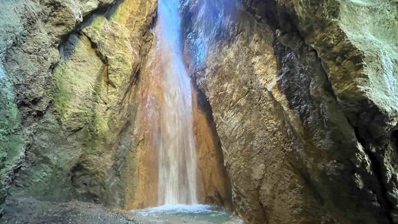 Çorum'da kayaların arasında yılın belli döneminde akan şelale ziyaretçilerini hayran bırakıyor.