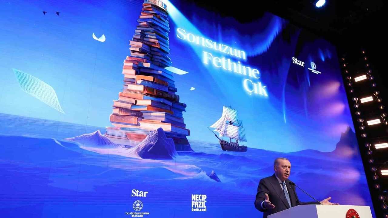 Necip Fazıl Kısakürek Ödülleri'nin 12'ncisi, 'Sonsuzun Fethine Çık' temasıyla Beyoğlu Atatürk Kültür Merkezi'nde gerçekleştirildi. Programa Cumhurbaşkanı Erdoğan'ın yanı sıra, bakanlar, sanat dünyasından tanınan isimler ve çok sayıda davetli katıldı. Katılımcıların konuşmaları ve videolu tanıtımların ardından Cumhurbaşkanı Recep Tayyip Erdoğan, kürsüye çıkarak salona hitap etti. Vefat eden Türk Edebiyatı'nın önemli isimlerini yad ederek konuşmasına başlayan Cumhurbaşkanı Erdoğan, 'Bu yıl 'Sonsuzun Fethine Çık' temasıyla 12'ncisi tertiplenen Necip Fazıl Kısakürek Ödülleri'nin ilim, kültür ve sanat camiamız başta olmak üzere ülkemiz ve milletimiz için hayırlara vesile olmasını diliyorum. Üstadın hem kalplerde hem de zihinlerde bıraktığı izleri bugüne taşıyan, Necip Fazıl'ın fikrî ve edebî mirasını güçlü bir şekilde yaşatan her bir kardeşime canı gönülden teşekkür ediyorum. 2014'ten bu yana geleneksel olarak her yıl sahipleriyle buluşturduğumuz Necip Fazıl Ödülleri, bugün geldiğimiz nokta itibarıyla sanat ve düşünce dünyamızda kurucu bir nitelik kazanmıştır. Bu ödüller, tam da 12 yıl önce tahayyül ettiğimiz şekilde kültür, sanat ve fikir dünyamıza yeni bir pencere açmıştır' dedi.