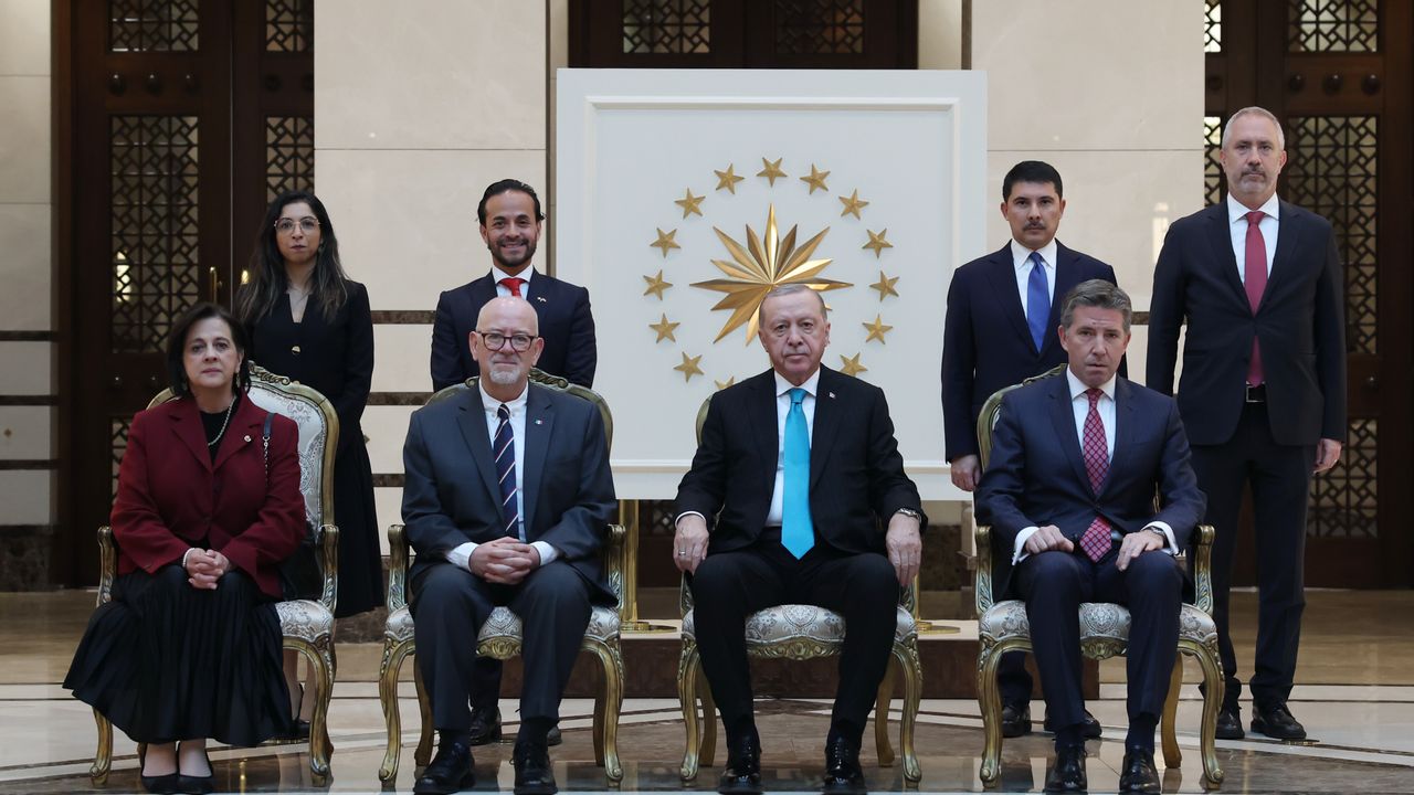 Cumhurbaşkanlığı Külliyesi'ndeki kabulde, Meksika Büyükelçisi Francisco Javier Diaz De Leon, Mısır Büyükelçisi Wael İbrahim Ali Badawi el Sheikh, Sri Lanka Büyükelçisi Niluka Kadurugamuwa ve Litvanya Büyükelçisi Marius Janukonis, Cumhurbaşkanı Erdoğan'a güven mektuplarını sundu.