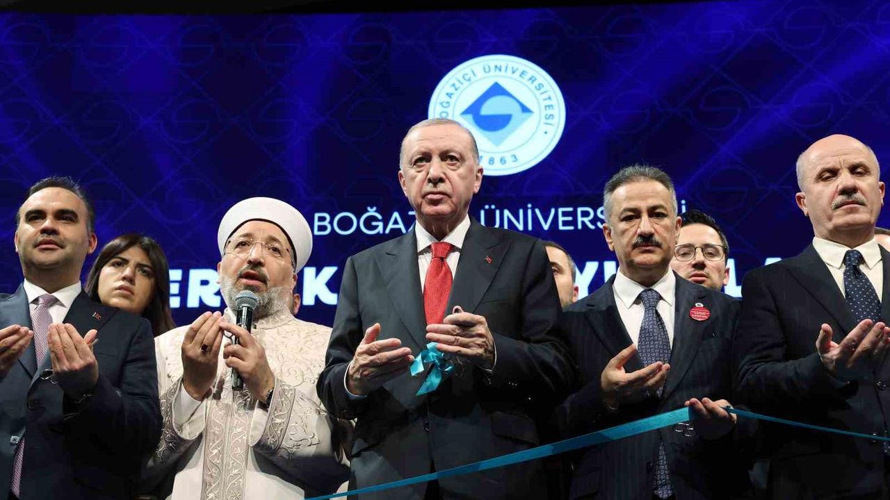 Üniversite ve hocaların bir yandan evrensel işler yaparken diğer yandan yerlileşme hamlelerini devam ettirmelerinin önemsediklerini belirten Cumhurbaşkanı Erdoğan, 'Boğaziçi Üniversitesi'mizin son dönemde bu yönde önemli adımlar atmasını memnuniyetle karşılıyorum. Boğaziçi Üniversitesi'mizin dünyayın önde gelen eğitim kurumlarında öğrenim görmüş genç akademisyenleri kadrosuna katarak tersine beyin göçüne liderlik etmesi ayrıca kayda değerdir. Türkiye'nin en seçkin yüksek öğretim kurumlarından biri olan Boğaziçi Üniversitemiz inanıyorum ki Türkiye'nin geleceğini şekillendirecek bilgili, şuurlu ve özgüvenli bir gençliğin yetişmesine çok anlamlı katkılar sunacaktır. Üniversitelerimizin özellikle uluslararası başarı listelerinde daha yüksek sıralara tırmanması için tüm imkanlarımızı seferber ettik. 23 yıl önce eğitime ayrılan bütçe yalnızca 7,5 milyar liraydı. 2026'da bu rakam yüksek öğretim dahil 3 trilyon lirayı buldu. Üniversite sayımızı 76'dan 208'e, akademik personel sayımızı 70 binden 180 bine ulaştırdık. Üniversitelerimizde 6 milyon 830 bin öğrenci eğitim alıyor. Dünyanın 198 ülkesinden gelen 350 bini aşkın misafir öğrenci aynı şekilde üniversitelerimizde yüksek standartlarda öğrenim görüyor. Ülkemizin kanayan yarası olan yurt sorununu yürttüğümüz projelerle çözüme kavuşturduk. 2022'de 190 olan yurt sayımızı bugün 880'e çıkardık. Yatak kapasitemizi 182 binden aldık 1 milyona getirdik. Başvuran her öğrencimize burs veya kredi imkanı sağlıyoruz. Geçen ay müjdesini verdiğimiz Gençliğin üretim çağı programıyla genç arkadaşlarımızın iş hayatına katılmasında da yanlarına oluyoruz. Boğaziçi Üniversitesi 2021 yılında kurduğumuz Hukuk Fakültesi bu yıl ilk mezunlarını verecek' dedi.