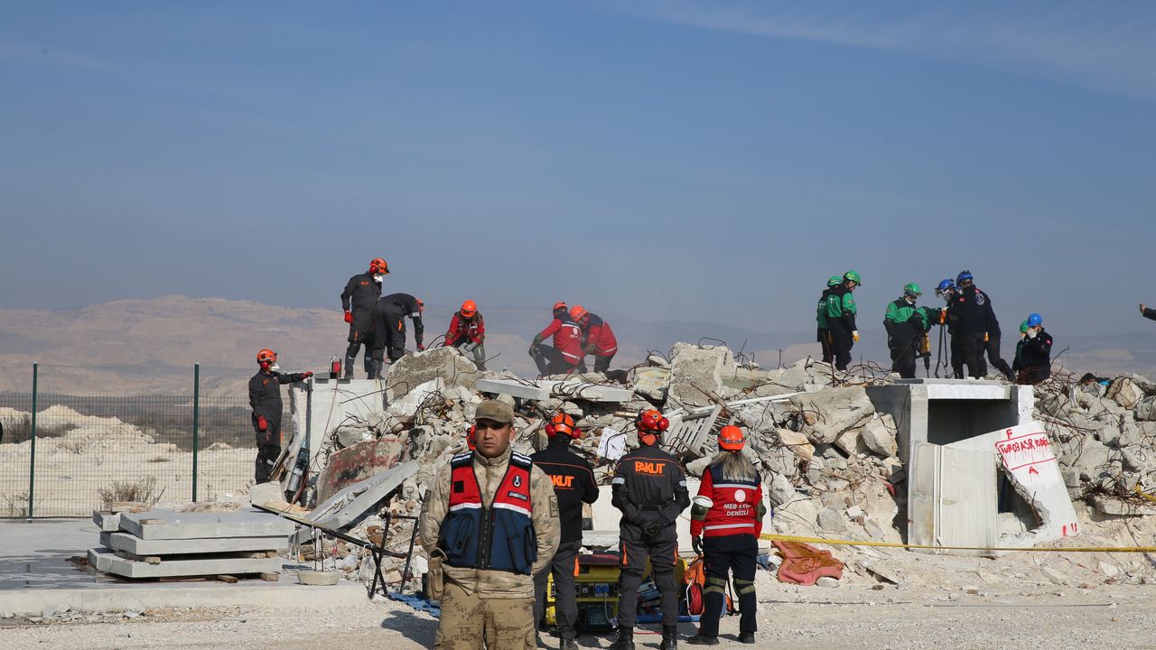 Buradaki temsili enkaz alanında 300 kişinin katıldığı arama kurtarma ve destek ekiplerinin çalışmaları yerinde incelendi.