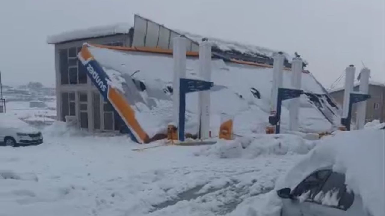 Hakkari'nin Derecik ilçesinde yoğun kar yağışı nedeniyle bir akaryakıt istasyonunun çatısının çökmesi sonucu 7 kişi yaralandı.