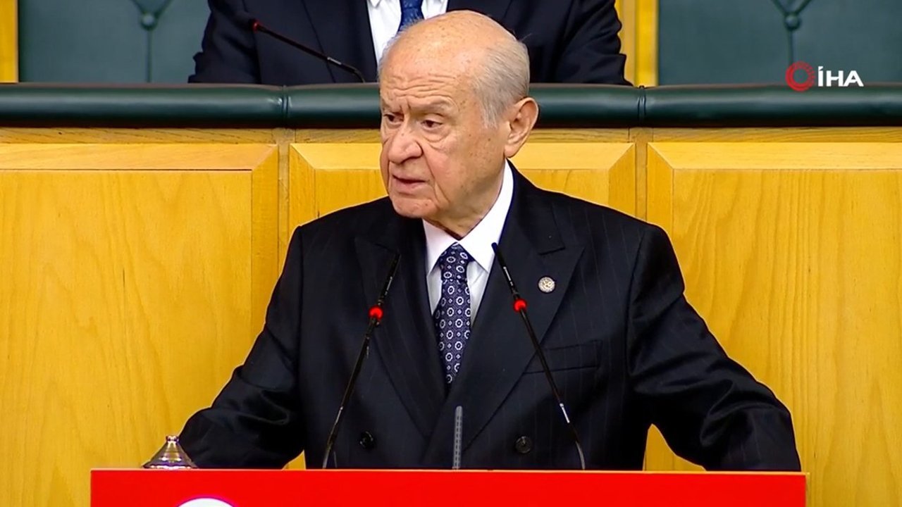 MHP Lideri Devlet Bahçeli, TBMM’de partisinin grup toplantısında konuştu. Sınıflı bir toplum yapısını tamamıyla reddettiklerini belirten Bahçeli, “Siyasette hiç kimseyle, hiçbir partiyle kategorik olarak alıp veremeyeceğimiz, konuşup çözemeyeceğimiz bir şey yoktur. Siyasi alakamız, sert veya yumuşak tarzımız tek tek fertlerin şahsiyet kalibreleri değil fikir ve düşünce kapasiteleriyle sınırlıdır. Muhataplarımızın kim olduğundan, özel hayatlarının nasıl oluştuğundan ziyade, ne söylediklerine, neyi hedeflediklerine bakıyor, siyasi bağlantı hatlarımızı buna muvafık kuruyoruz” ifadelerini kullandı.