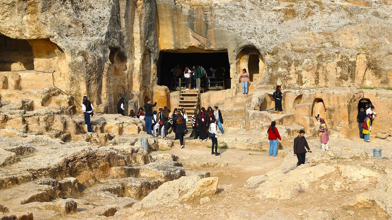 Lise öğrencileri kendileri için hazırlanan gezi programı kapsamında Ergani'nin 6 kilometre kuzeybatısında yer alan 'Hilar Mağaraları' olarak da bilinen Hilar Kaya Mezarları'nı ziyaret etti, yapı hakkında bilgi aldı.