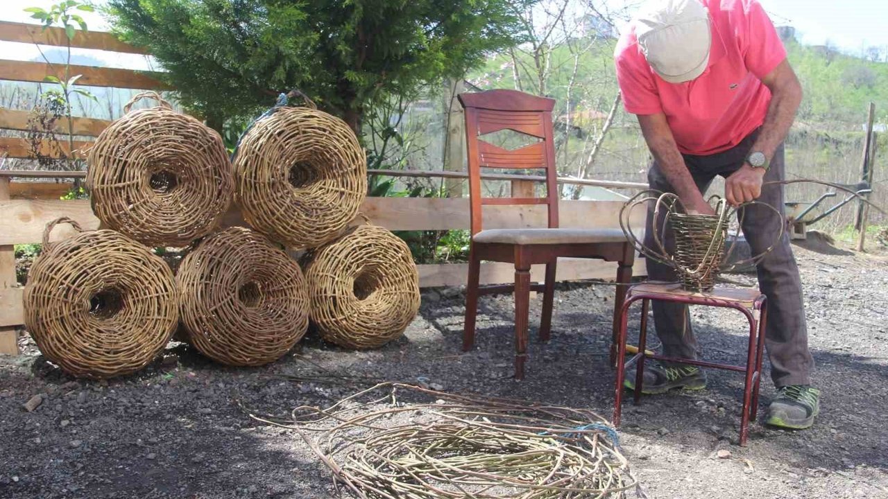Çocukluk yıllarında balık sepeti ören bir komşusunu izleyerek bu zanaatı öğrendiğini belirten Özcan, 'Bununla derede, denizde, yaylada balık tutuluyor, her yere atılır. Bunun içerisine ekmek ve taş konuluyor, sapına ip bağlanıyor ve suya atılıyor. Sonrasında sabah gidip balıklar alınıyor' diye konuştu.