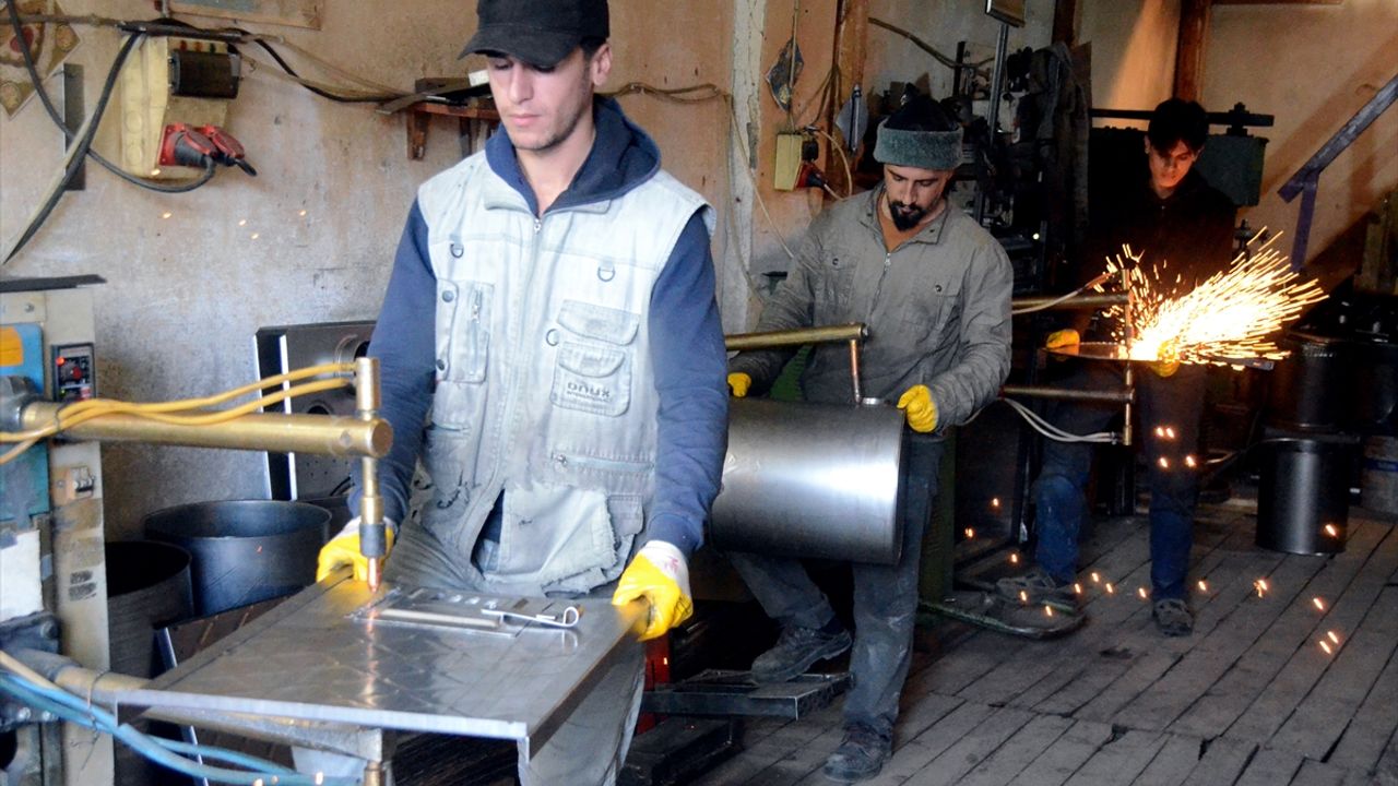 Sarıkamış Küçük Sanayi Sitesi'ndeki 4 ayrı imalathanede yılda yaklaşık 80 bin soba üretiliyor.
