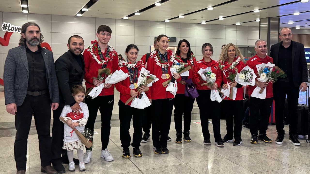 Kahire'den dönen milli sporcular, Sabiha Gökçen Havalimanı'nda çiçeklerle karşılandı.