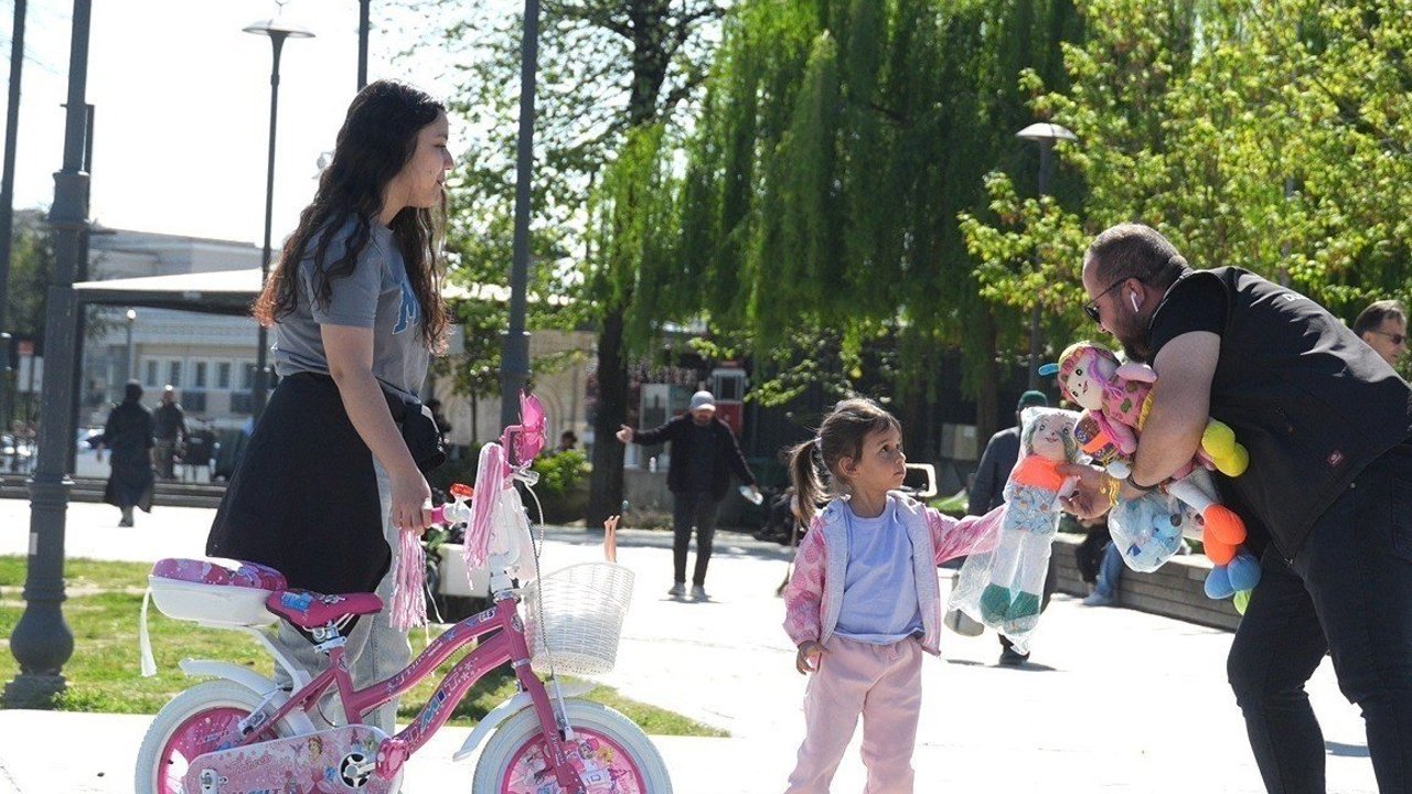 DÜZCE (İHA) - Düzce Belediyesi, 23 Nisan Ulusal Egemenlik ve Çocuk Bayramı etkinlikleri kapsamında sosyal farkındalık çalışması yaptı. Projede yere düşürülen oyuncakları sahibine ulaştıran çocuklar, aynı zamanda oyuncak sahibi oldular.