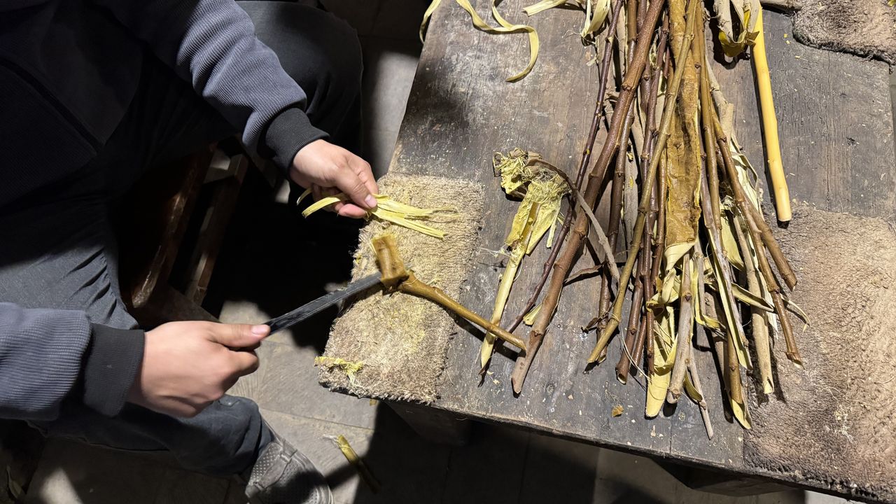 Kaynatılan dal parçalarının dış yüzeyi kolayca soyulabiliyor ve soyulan parçanın içinde kalan kısma erişiliyor. Elde edilen bu ürün, dayanıklılığı dolayısıyla herhangi bir ip gibi elle koparılamıyor.