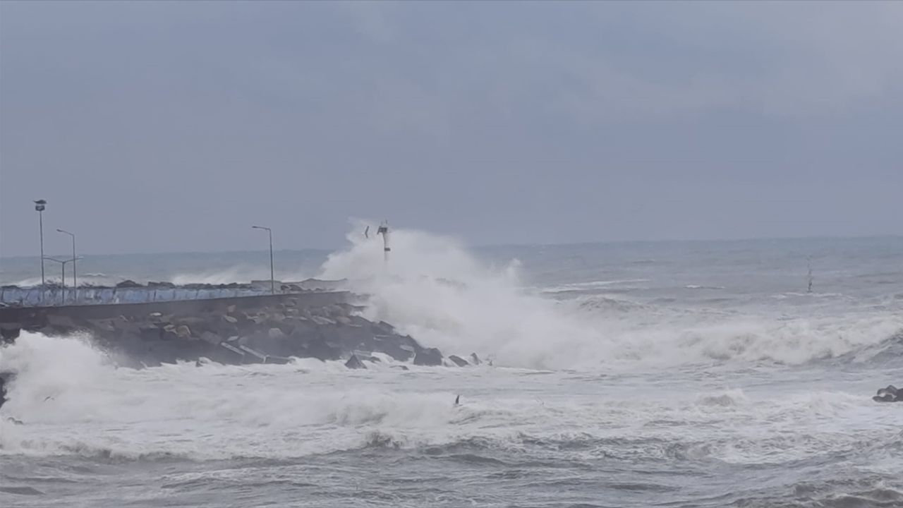 Rüzgar nedeniyle boyu 5 metreye yaklaşan dalgalar, zaman zaman kıyı şeridindeki dalgakıranları aştı.