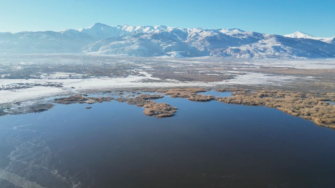 Eber Gölü'nün Afyonkarahisar sınırlarında kalan kısmında soğuk hava nedeniyle kısmi donmalar meydana geldi.