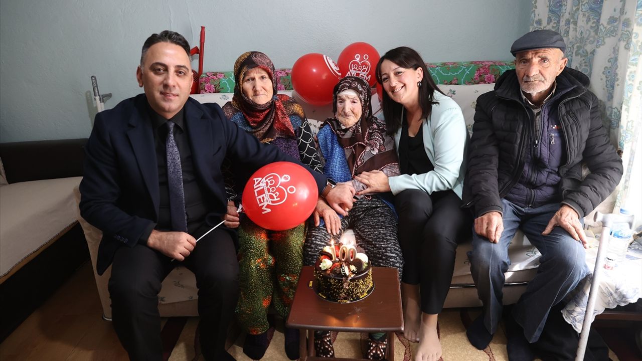 Aile ve Sosyal Hizmetler İl Müdürlüğü ekipleri, Yağcılı köyünde kızı ve damadıyla yaşayan Seher Topaç'ın 100. doğum günü dolayısıyla kutlama programı organize etti.