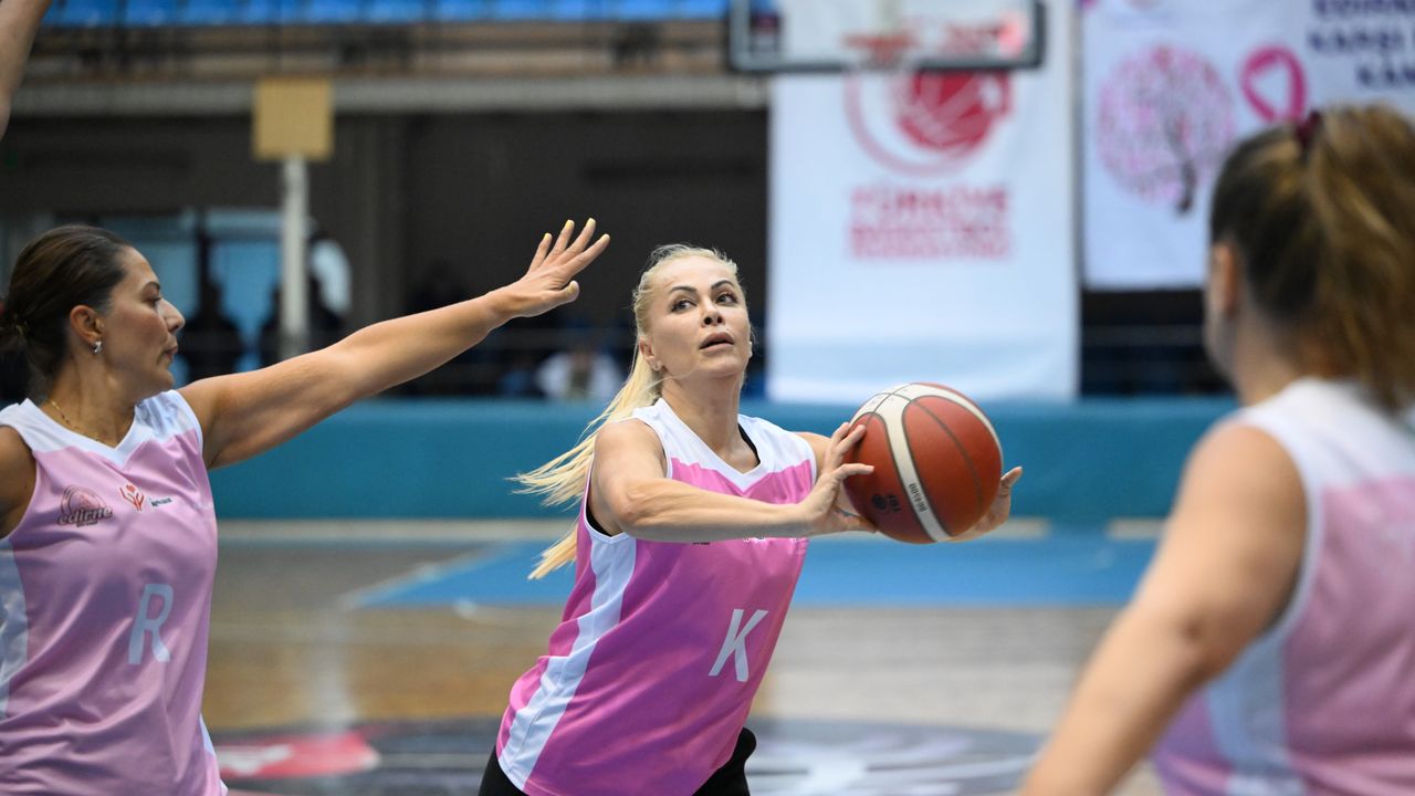 Bu önlemlerin başında sporun geldiğini belirten Canbaz, 'Bizim bugün bu sahada olmamızın bir nedeni var. Spora ne kadar yakınsak kansere o kadar uzağız. Kadınlar olarak hem basketbol oynuyoruz hem farkındalık yaratıyoruz. Formamız pembe mesajımız net. Sağlıklı kadın hareket eden kadındır.' dedi.