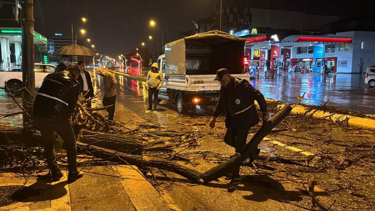 Sağanak nedeniyle Talatpaşa Caddesi'ndeki bir ağaç yola devrildi.