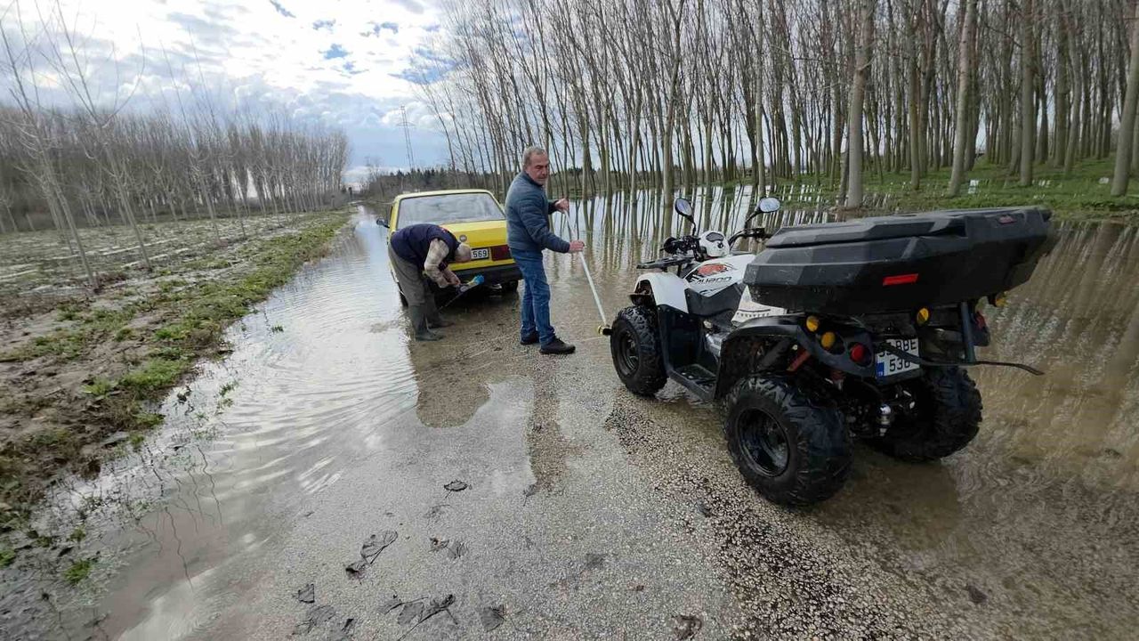 Edirne'de yaşanan su taşkınlarının ardından ortaya çıkan ilginç görüntüler dikkat çekti. Taşkın nedeniyle bahçelerine ulaşmakta zorlanan bazı vatandaşlar, yolda biriken suyu araç ve motosikletlerini yıkamak için kullandı.