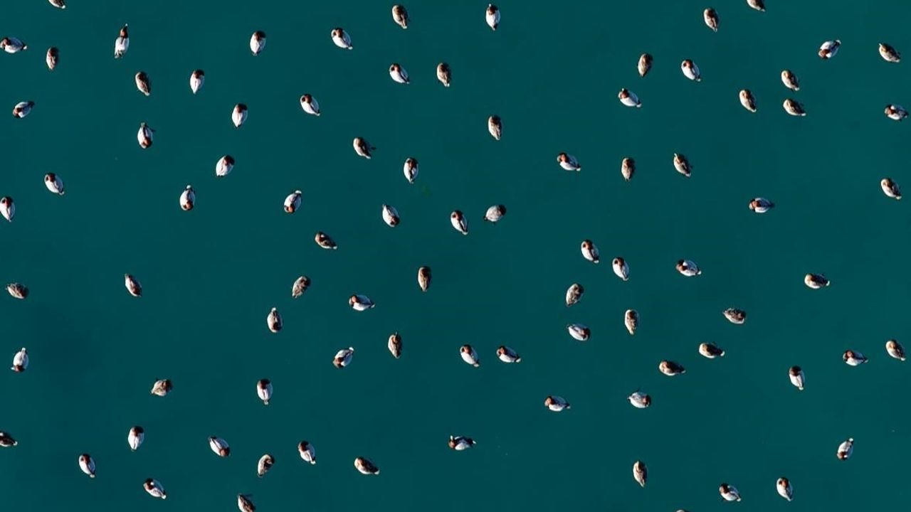 Türkiye'nin önemli sulak alanları arasında yer alan Salda Gölü, eşsiz doğal manzarasının yanı sıra barındırdığı zengin kuş türleriyle de dikkat çekiyor. Türkiye'nin Maldivleri olarak bilinen Salda Gölü, özellikle göç dönemlerinde çok sayıda su kuşuna ev sahipliği yapıyor. Gölde yoğun olarak gözlemlenen elmabaş patka ördekleri, sürüler halinde su yüzeyinde süzülürken dron ile görüntülendi. Görüntüler doğal yaşamın güzel anlarını ortaya koydu.