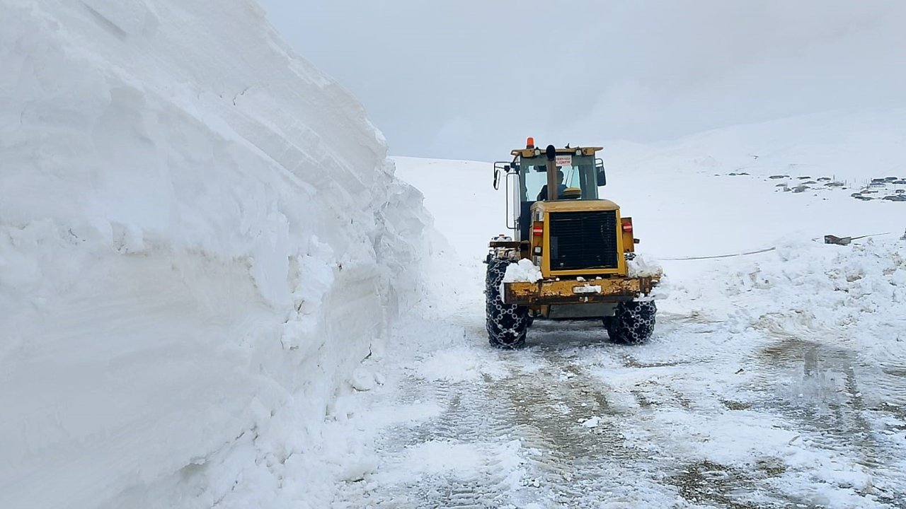 Erzurum'un yüksek kesimlerinde yoğun yağış ve tipiden dolayı 2-3 metreye ulaşan karı temizlemek için ekipler yoğun mesai harcıyor.
