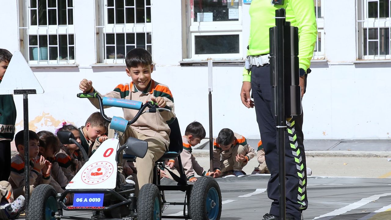 Erzurum'da İl Emniyet Müdürlüğü tarafından hayata geçirilen projeyle çocuklar trafik kurallarını eğlenerek öğrendi.