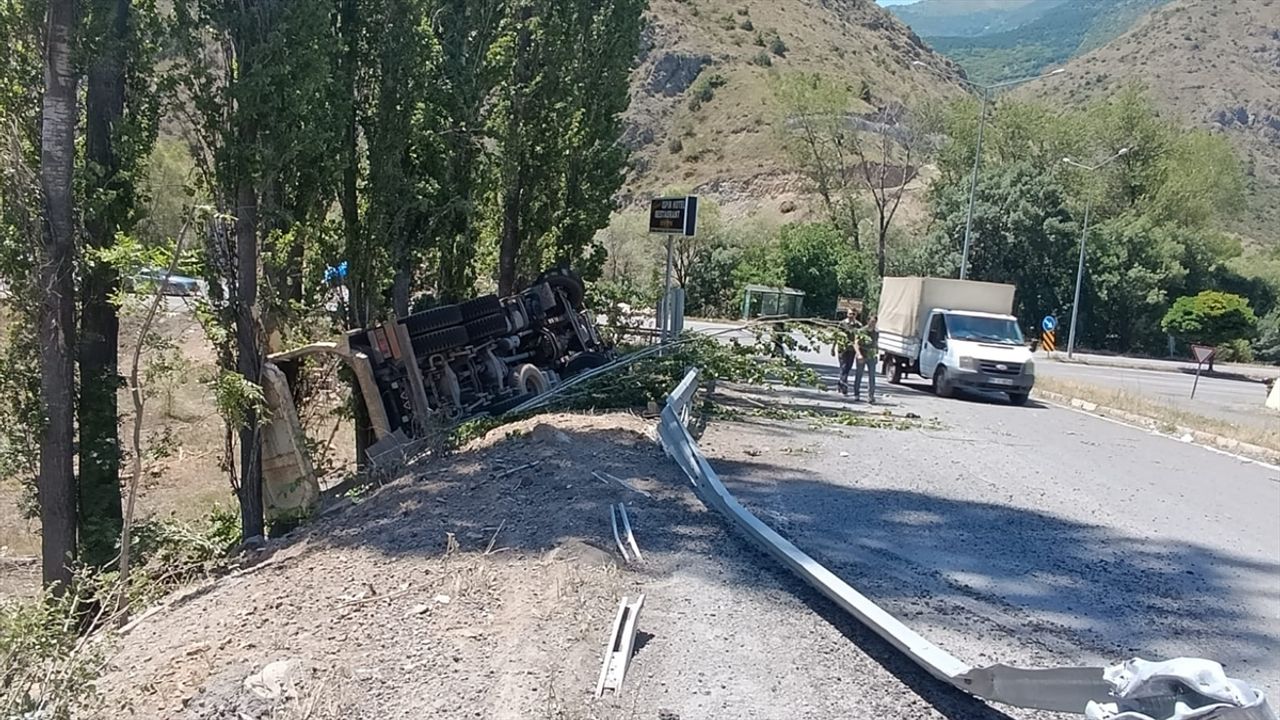 Burhan T. idaresindeki 53 ACC 225 plakalı hafriyat kamyonu, Rize-Erzurum kara yolu Aşağı Özbağ Mahallesi Dörtyol mevkisinde kontrolden çıkarak yol kenarındaki bariyerlere çarpıp şarampole devrildi.