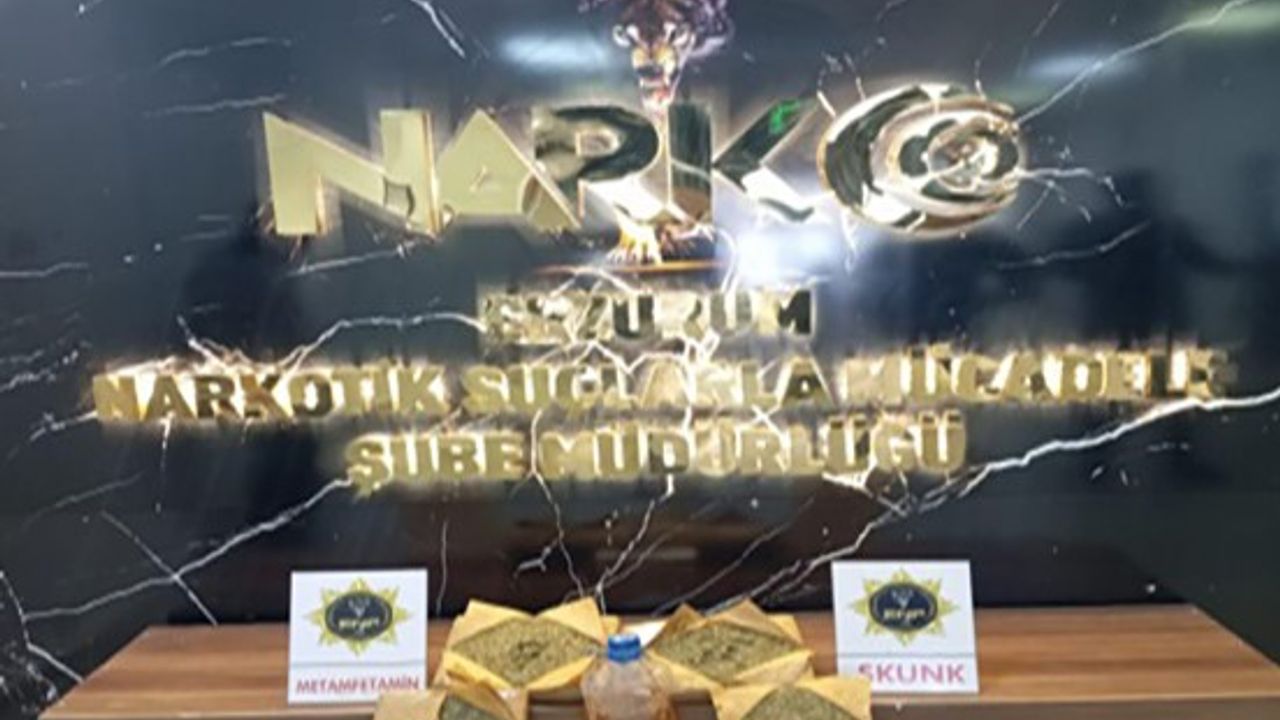 Erzurum'da düzenlenen operasyonda 7 kilo 300 gram skunk ile 2 kilo 150 gram metamfetamin ele geçirildi, 3 şüpheli tutuklandı.