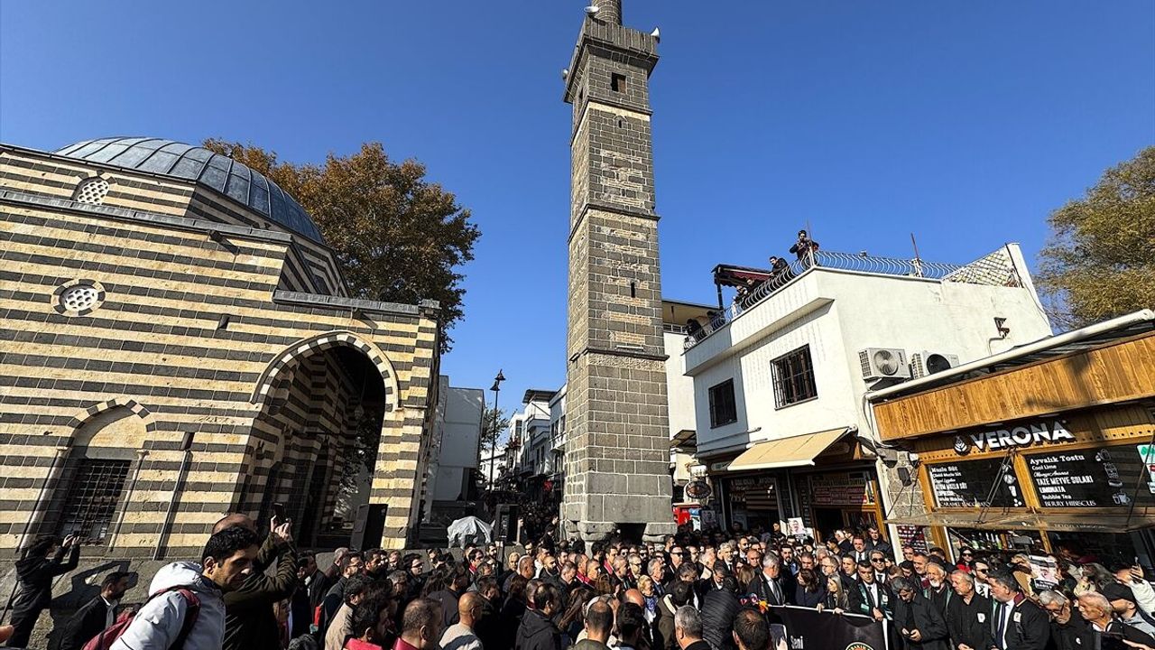 Diyarbakır Adliyesi önünde bir araya gelen, aralarında Türkiye Barolar Birliği (TBB) Başkanı Ramiz Erinç Sağkan ve Tahir Elçi'nin eşi Türkan Elçi ile avukatların yer aldığı grup, terör saldırısının gerçekleştirildiği Dört Ayaklı Minare'nin bulunduğu Av. Tahir Elçi Sokağı'na kadar yürüdü.