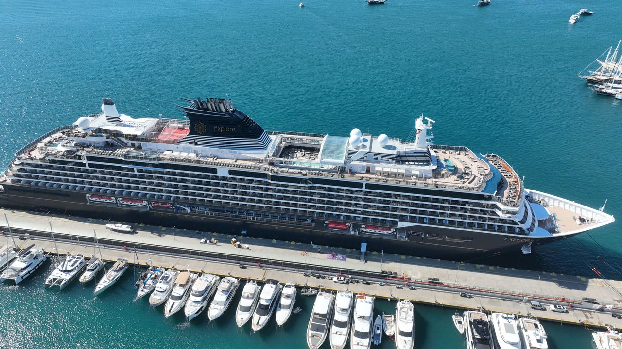 Girit Adası'ndan Marmaris'e gelen 250 metrelik lüks yolcu gemisi 'Explora I', Marmaris Cruise Port Limanı'nın büyük iskelesine yanaştırıldı.