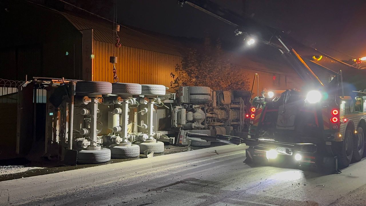 Kemerburgaz Cendere Yolu mevkisinde Emre T'nin kullandığı 34 GEF 48 plakalı mıcır yüklü hafriyat kamyonu, henüz belirlenemeyen nedenle kontrolden çıkarak karşı şeride devrildi. Sürücü yaralanırken, mıcırlar yola döküldü.