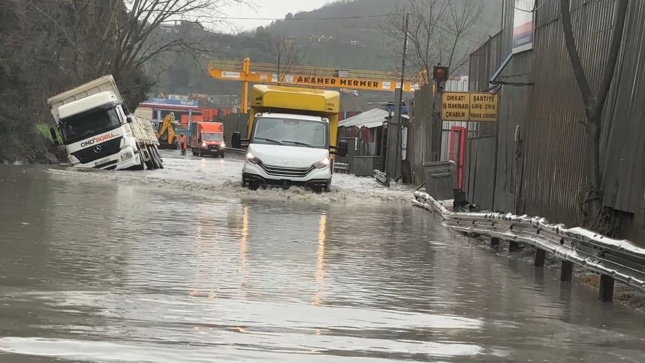 İstanbul Eyüpsultan Ayazağa Cendere yolu yağmur nedeniyle göle döndü. Bazı sürücüler yolda kaldı. Tırlar ve hafriyat kamyonları da göle dönen yolda ilerlemekte güçlük çekti. Sürücüsünün kontrolünden çıkan bir hafriyat kamyonunun da yan yattığı görüldü. Olay yerine gelen ekipler hafriyat kamyonunu kurtarmak için çalışma başlattı.