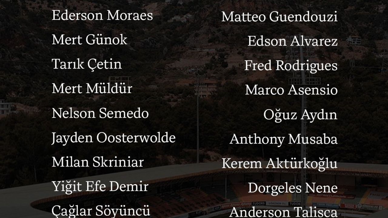 Ederson Moraes, Mert Günok, Tarık Çetin, Mert Müldür, Nelson Semedo, Jayden Oosterwolde, Milan Skriniar, Yiğit Efe Demir, Çağlar Söyüncü, İsmail Yüksek, Bartuğ Elmaz, Matteo Guendouzi, Edson Alvarez, Fred Rodrigues, Marco Asensio, Oğuz Aydın, Anthony Musaba, Kerem Aktürkoğlu, Dorgeles Nene, Anderson Talisca, Jhon Duran.