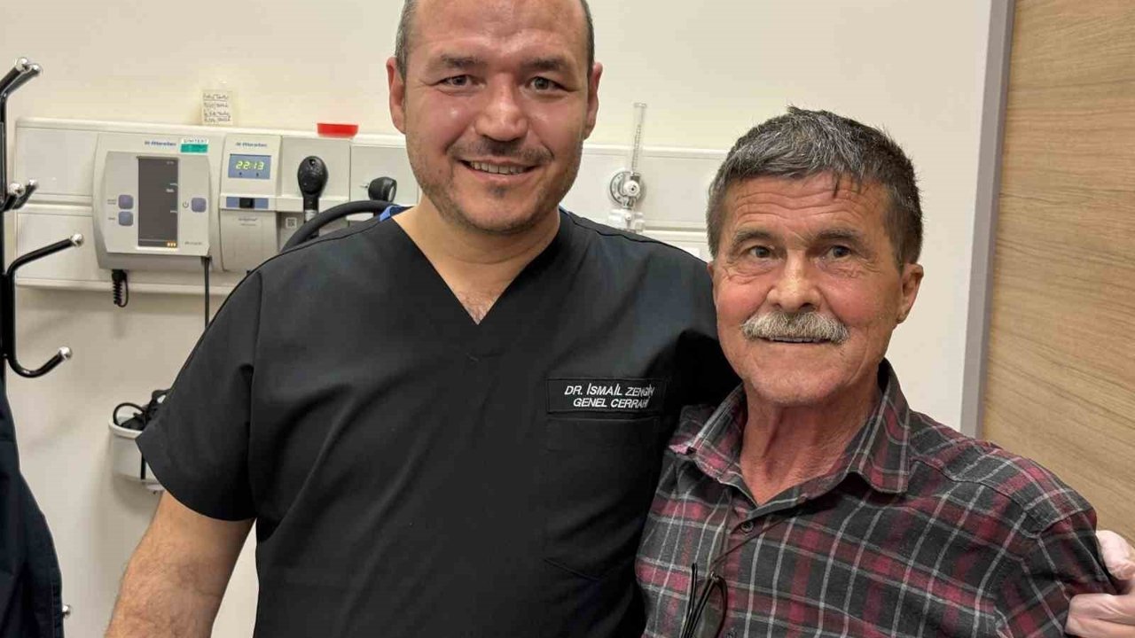 'Hastamız bize kasık fıtığı şikâyetiyle başvurdu. Bize gelen bütün hastalarımıza kasık fıtığı veya başka bir şikâyetle de gelse, genel taramalarını yaparak başka ek bir patoloji var mı diye bakıyoruz. Hastamızda da yaptığımız incelemede kalın bağırsağında bir kanser gördük, sağ kalın bağırsağında. Kalın bağırsak kanserleri açık ve kapalı yöntemlerle yapılabilmektedir ve hastamızdaki sağ kalın bağırsak, sağ taraftaki kanser; dünyada da dâhil, ülkemizde ve dünyada sadece gelişmiş merkezlerde laparoskopik olarak yapılabilmekte. Çok zor bir cerrahi işlemdir ve hayati riski yüksek olduğu için genellikle açık yapılması tercih edilir. Ancak bu konuda tecrübemiz ve deneyimimiz yeterli düzeyde olması nedeniyle hastamıza kapalı, laparoskopik cerrahi yöntemiyle ameliyatını başarılı bir şekilde tamamlayarak taburcu ettik ve hastamızın onkolojik süreci başladı. Yaklaşık 4 buçuk saat süren ameliyatımızı birkaç tane delikle tamamlamış olduk. Tümörü de yaklaşık 3 santimlik bir kesiyle tamamen vücuttan dışarıya almış olduk. Hastamız şu an gayet sağlıklı; hastamızı 7 gün yatırdıktan sonra taburcu ettik.'