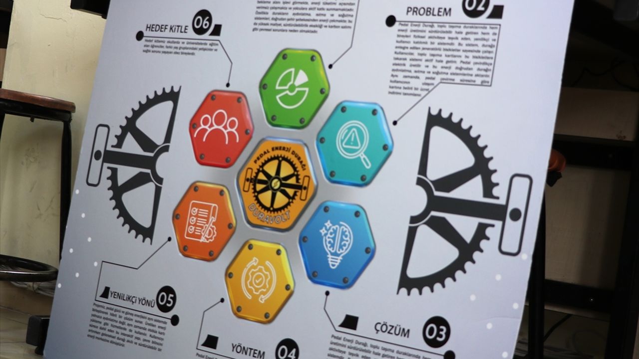Söz konusu projeyle bu yıl İstanbul'da düzenlenen TEKNOFEST'te finale kaldıklarını ifade eden Güneş, 'Bizler bu bisikletleri otobüs duraklarınına, alışveriş merkezleri ve sınıfların koridorlarına koyacağız. Pedal çevirme süresince elektrik üretilecek. Bu üretilen elektrik ile sınıflar, otobüs durakları ve alışveriş merkezlerinin aydınlatmasında kullanılabilecek.' ifadesini kullandı.