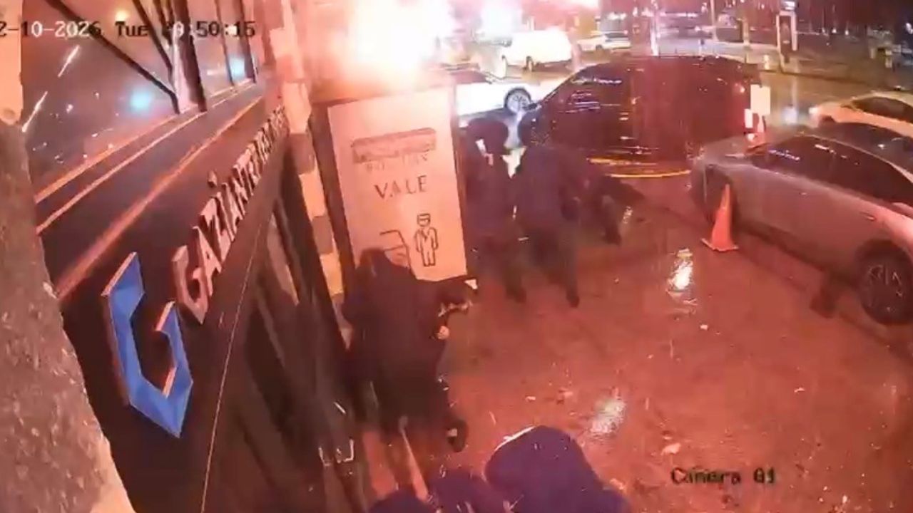 Lüks restorana yönelik silahlı saldırı anlarına ait güvenlik kamera görüntüleri ortaya çıktı. Görüntülerde, bir grup şahıs mekan önünde beklerken silahlı saldırının gerçekleşme anları ve sonrasına etrafa kıvılcımların saçılması yer aldı.