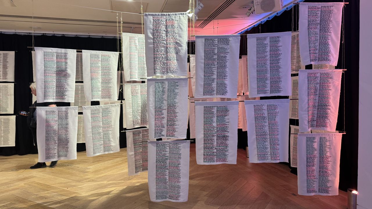 Evers'ın 'Stitch Their Names Together' adlı çalışması, Kings Place'ta düzenlenen festivalin 'Presence of the Absent (Varlığın Yokluğu)' temalı sergiler bölümünde ziyaretçilerle buluştu.