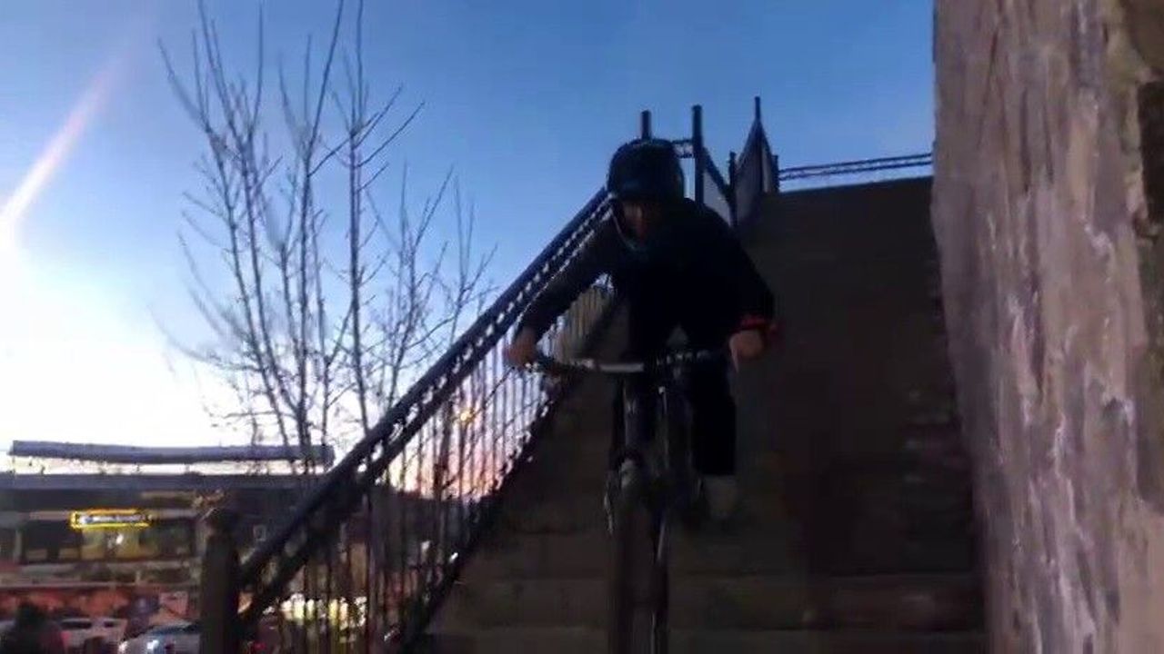 Adrenalin tutkunu genç sporcular Erzurum'un cadde ve sokak merdivenlerini bisiklet parkuruna çevirdi.