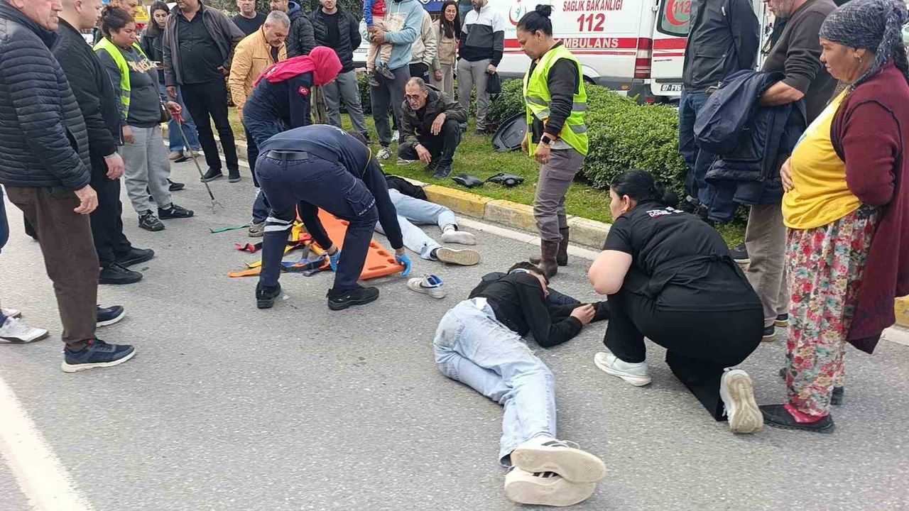 Kaza, Manavgat ilçesi Demokrasi Bulvarı'nda meydana geldi. Çevreyolundan Yapay Şelale yönüne seyreden Hüsamettin K.'nın kullandığı 07 BNC 290 plakalı motosiklet, 4592. Sokak kesişimini geçtiği sırada geri manevra yaparak yola dönmeye çalışan Ramazan A.'nın kullandığı 07 BOY 623 plakalı kamyonete arkadan çarptı. Güvenlik kamerasına saniye saniye yansıyan kazada motosiklet sürücüsü Hüsamettin K. ve arkasında oturan Hasan E.A. yaralandı. Olay yerindeki müdahalenin ardından ambulanslarla Manavgat Devlet Hastanesine kaldırılan yaralıların hayati tehlikelerinin bulunduğu öğrenildi.