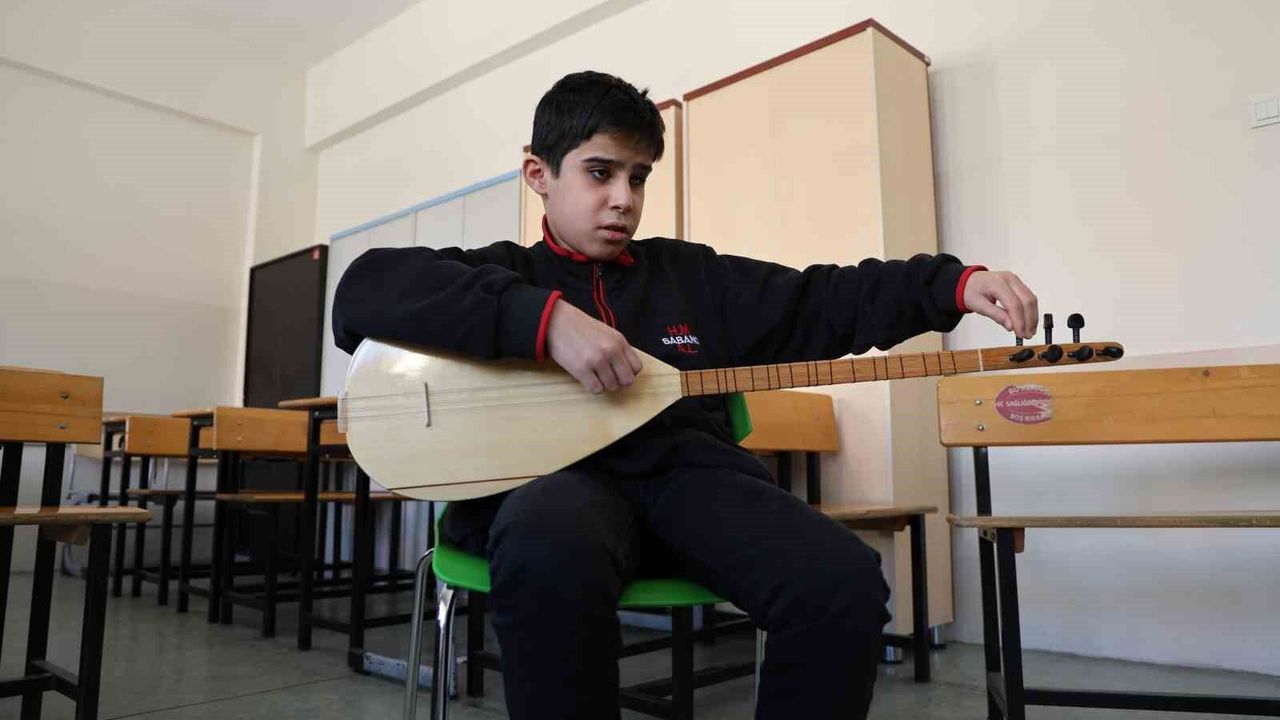 Sivas'ta yaşayan 13 yaşındaki görme engelli öğrenci, bağlamaya olan tutkusu ve azmiyle hem öğretmenlerinin hem de arkadaşlarının takdirini topluyor.