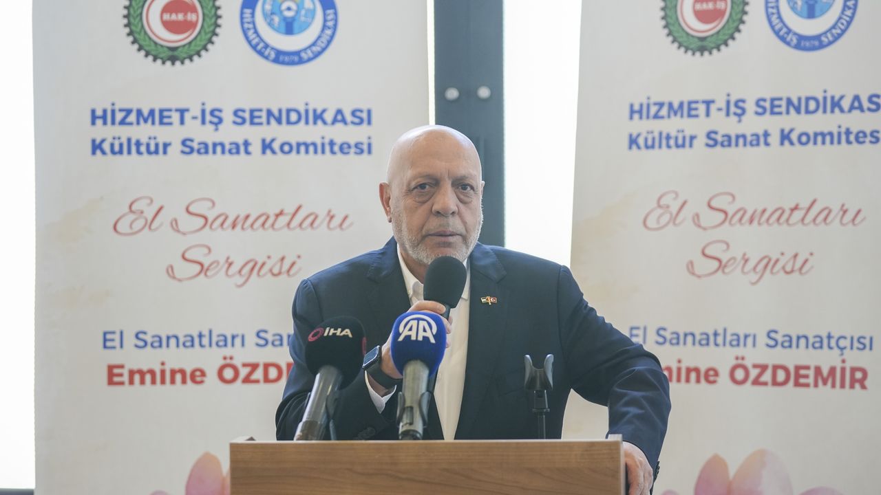 HAK-İŞ'in kuruluşunun 50. yılı olduğuna işaret eden Arslan, 'Ünlü ressamların Filistin, emek ve aile için özel olarak yaptıkları eserlerinin de yer alacağı 'HAK-İŞ Sergisi'ni gerçekleştireceğiz. Emine Hanım'ın sergisinde de ciddi bir el emeği var. Her bir eser için ortaya koyduğu emeği, 10 yılın birikimi. HAK-İŞ'in sadece toplu sözleşme, sendikal gündemle değil, kültür sanatla da anılan bir konfederasyon olması için çaba sarf edeceğiz.' ifadelerini kullandı.