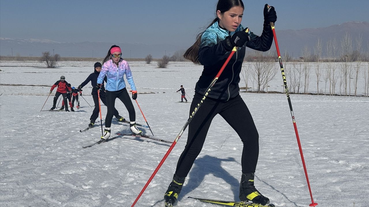 Antrenörleri gözetiminde inişli çıkışlı karlı arazileri kayaklarla geçmeye çalışan sporcular, 17-19 ocakta Erzurum'da yapılacak Türkiye Kayaklı Koşu Eleme Yarışması'nda derece elde etmek istiyor.