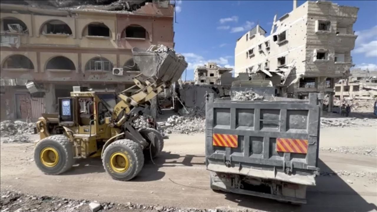 Hamas ile İsrail arasında varılan ateşkesin yürürlüğe girmesinin ardından Gazze Şeridi'nin güneyindeki Han Yunus Belediyesi ana yolların ve kavşakların açılması için yoğun çaba sarf ediyor.