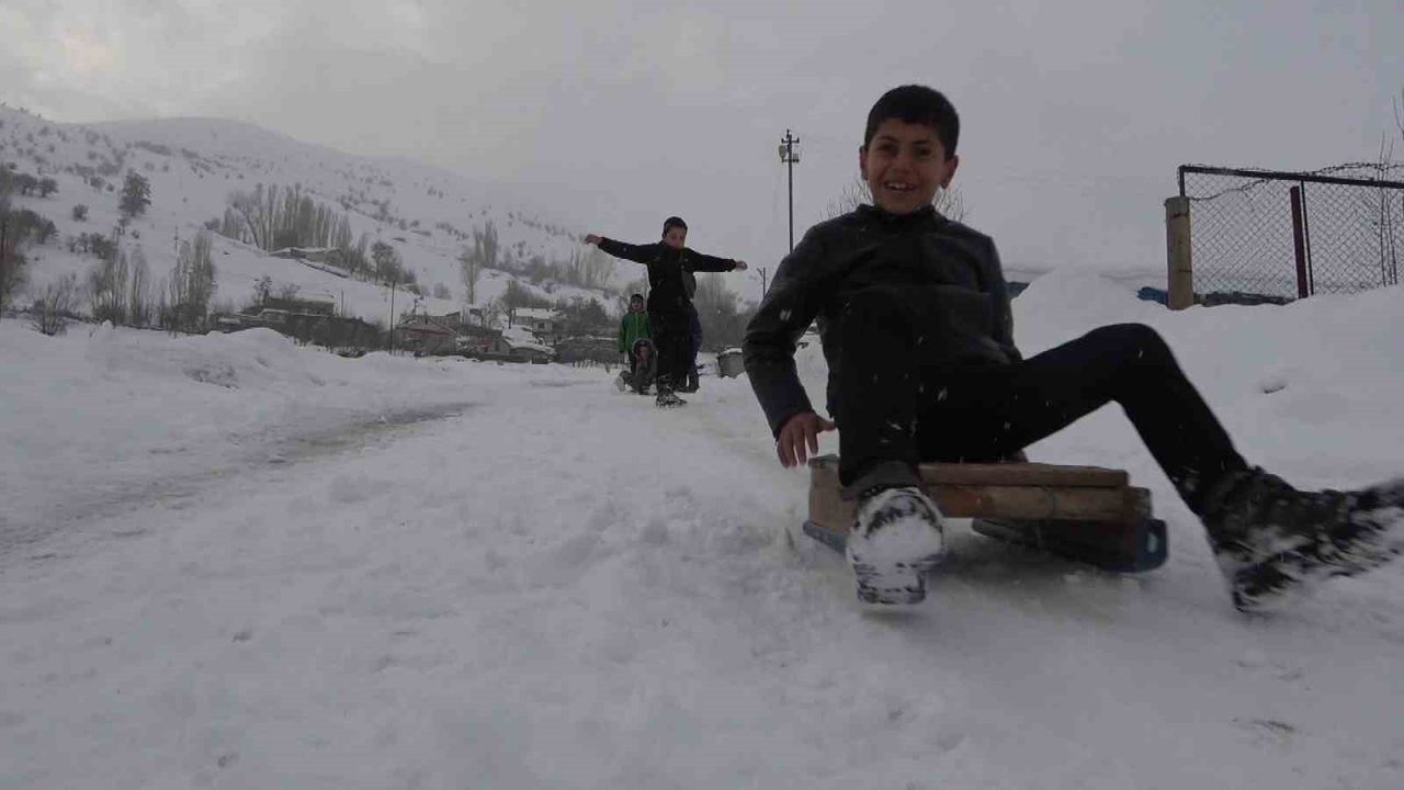 Muş'ta kırsal kesimde etkili olan kar yağışı, çocuklar için eğlenceye dönüştü. Hasköy ilçesine bağlı Dağdibi köyünde yaşayan çocuklar, kendi imkânlarıyla yaptıkları el yapımı demir patenlerle köyün yokuşlu yollarını adeta kayak pistine çevirdi. Renkli görüntülerin oluştuğu anlarda çocukların mutluluğu yüzlerine yansıdı. Zaman zaman yolların kar temizleme ekipleri tarafından açılması nedeniyle üzüldüklerini dile getiren çocuklar, buna rağmen fırsat buldukça farklı alanlarda kayarak karın tadını çıkarmaya devam ediyor.