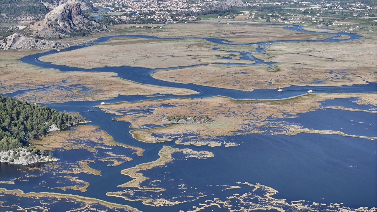 MUĞLA (AA) - ALİ RIZA AKKIR - Muğla'da havadan görünümüyle labirenti andıran Dalyan Kanalı'nda ekim ayında turistlerin ziyaretiyle hareketlilik yaşanıyor.