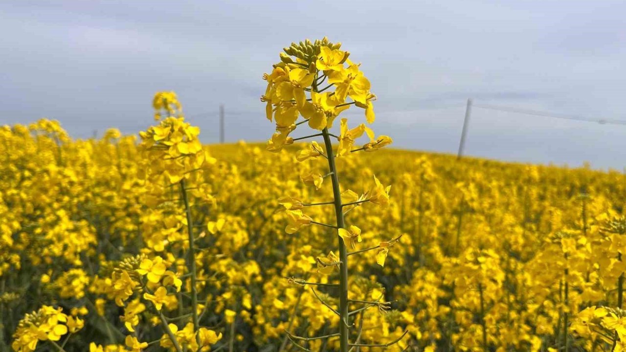 İlçenin bereketli topraklarına ekilen ayçiçeğine alternatif olarak ekilen ve bitkisel yağ üretiminde kullanılan kanola bitkisi çiçek açmaya başladı.
