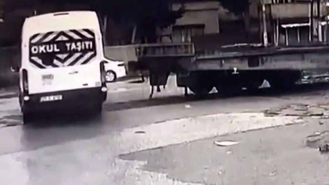 Gaziantep'in İslahiye ilçesinde hemzemin geçitten geçen okul servisine tren çarptı. Kaza anı güvenlik kamerasına yansırken servisin boş olması faciayı önledi.