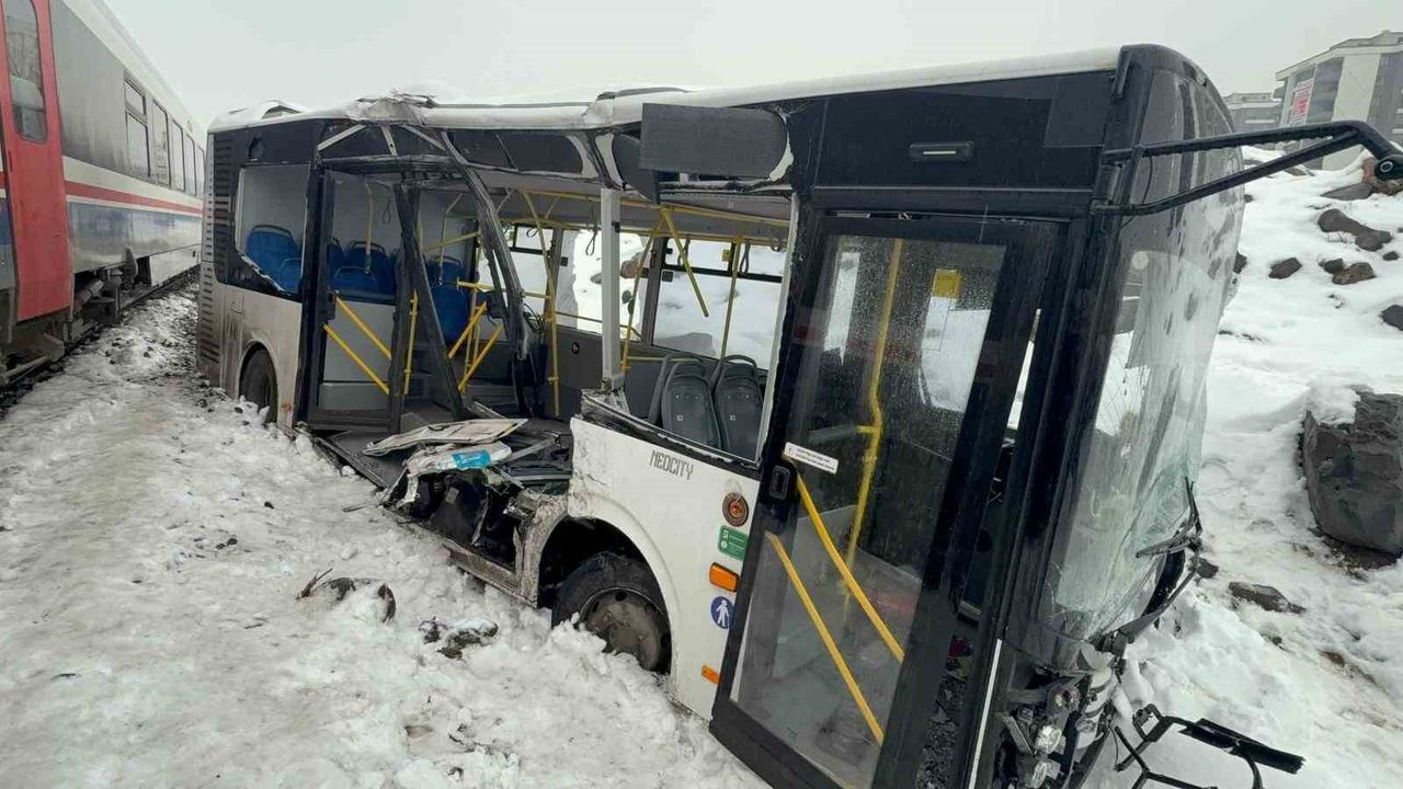 Diyarbakır'ın Yenişehir ilçesinde hemzemin geçitte trenle çarpışan belediye otobüsünün sürücüsü yaralandı.
