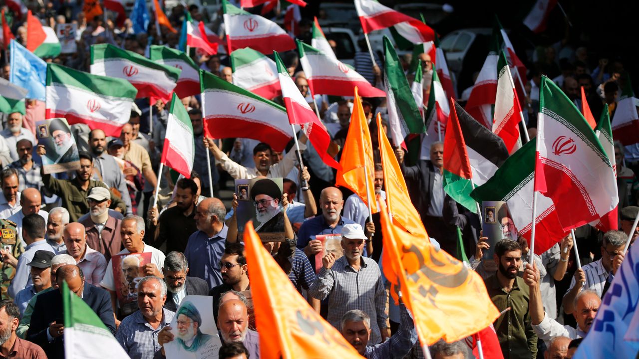Kalabalık grupların katıldığı gösterilerde İran, Filistin bayrakları ile Hamas ve Hizbullah flamaları taşıyan göstericiler İsrail ve ABD karşıtı sloganlar attı.